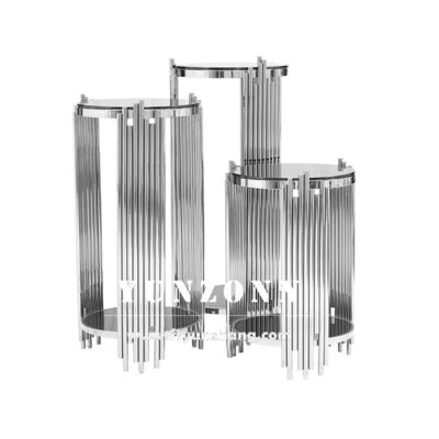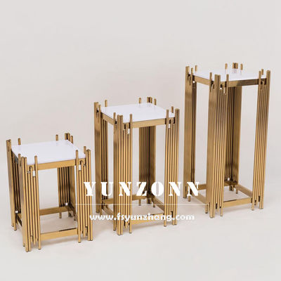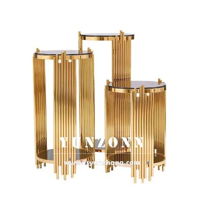 wholesale side end table modern design 3 sets with gold stainless steel base flower stand