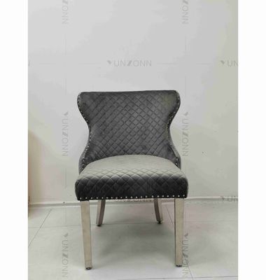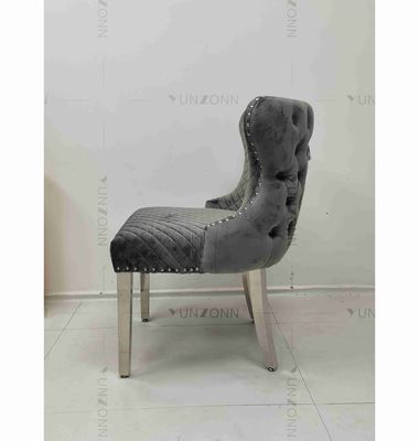 Gray Power Lion Button Heavy Dining Chair Silver Stainless Steel Legs