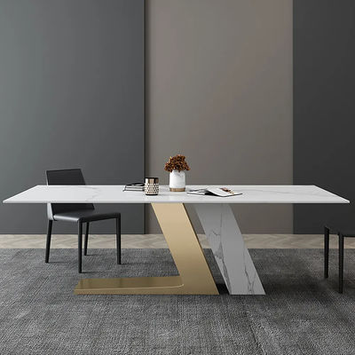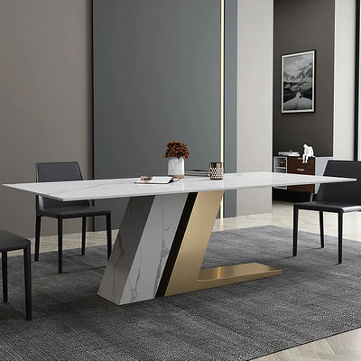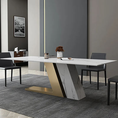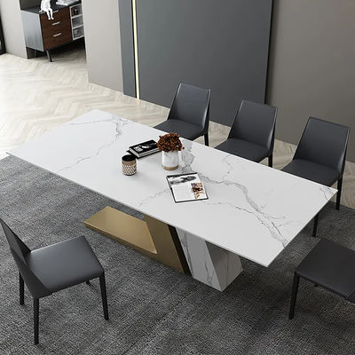 We can sit at the table and enjoy a wonderful meal, sharing the small events of the day around the table. We adopt the new high-temperature-resistant rock plate technology, with stainless steel gold-plated wire drawing table feet, and reinforced super thick stone pier rock plate table feet, the pattern can support customization.