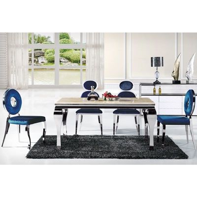 The dining table is mainly of simple design, suitable for purchase in the home. The simple style is durable, not the color of the flower, but the classic stainless steel silver as the main color. The tabletop can choose to use marble or MDF panel. This style has always been purchased in large quantities by major furniture dealers.