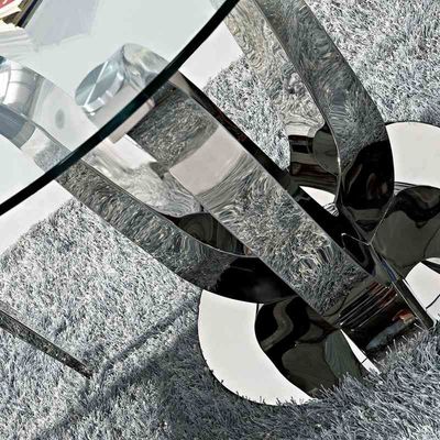 Antique Glam Silver dining table set D150*H75 Glass top table