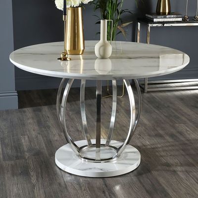 Savory Marble top ss stainless steel silver dining table with chairs set