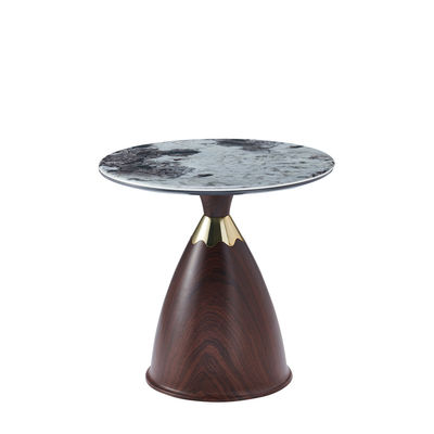 Modern light luxury round living room black marble look glass top metal base corner tables side table