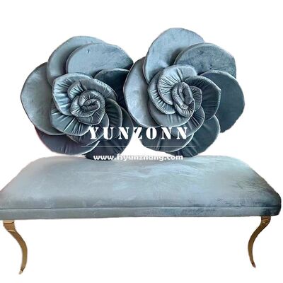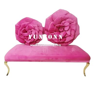 Modern Stainless Steel Sofa with Rose Flower Back Design Pink Red Velvet Seater for Hotel Wedding Lover's Favourite