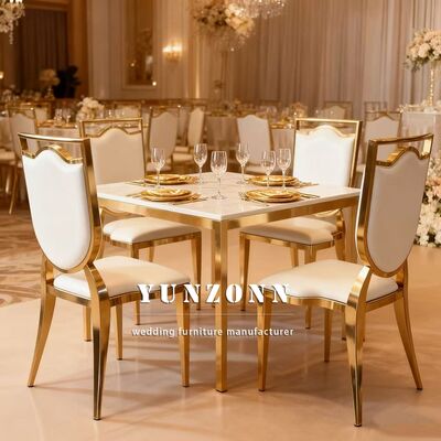Modern European Wedding Event Banquet Hall Furniture Stainless Steel Frame Luxury White Dining Chair |