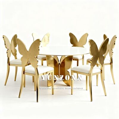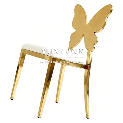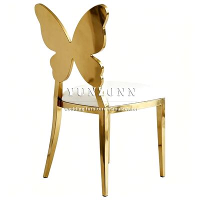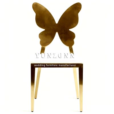 Professional Manufacture Stainless Steel Butterfly Back Comfortable Dining Chair Gold Backrest Wedding and Event Chairs |