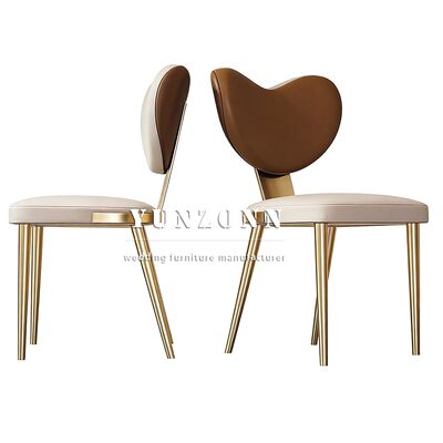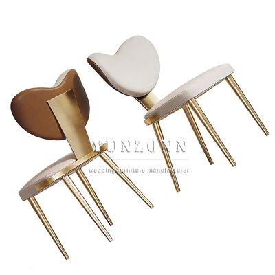 Beautiful Heart-shaped Leather Chair Luxury Villa Dining Room Furniture Exquisite Metal Feet Dining Chair |