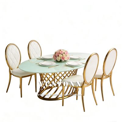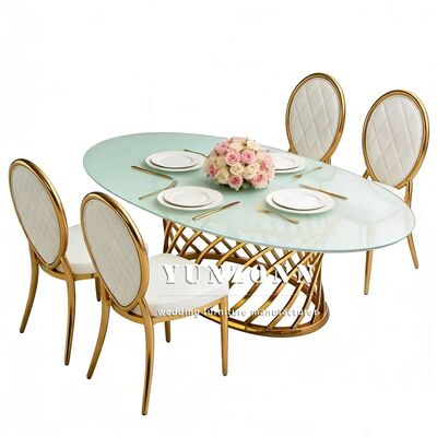 | Product Name: | Good Quality Mirror Glass Top with Stainless Steel Frame Oval Table for Wedding Dining Banquet Party |
