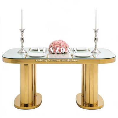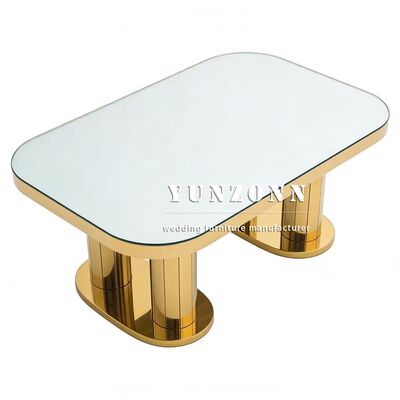 | Product Name: | Wholesale Rectangle Banquet Mirror Glass Top Stainless Steel Table Gold Wedding Events Hotels Dining Furniture |