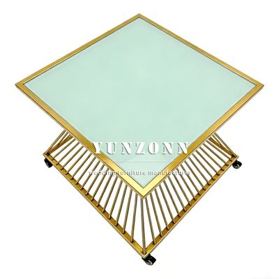 Top Sale Fashion Design Square Shape Glass Top Stainless Steel Wedding Cake Table 36