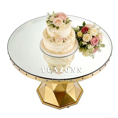 | Product Name: | NElegant Modern New Arrival Wedding Ceremony Celebration Decoration Gold Stainless Steel Mirror Glass Cake Stand |