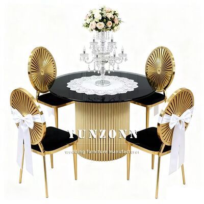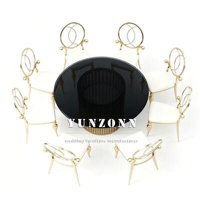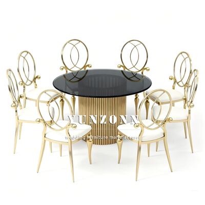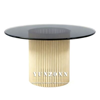| Product Name: | Wedding Furniture Gold Stainless Steel Frame Tempered Mirror Glass Top Dining Table |