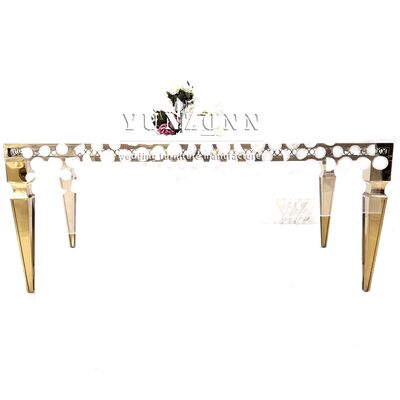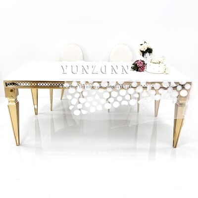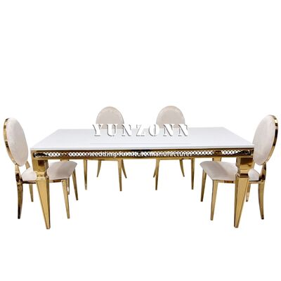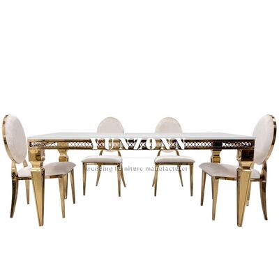 | Product Name: | Romantic Rectangle Mirror Glass Wedding Dining Table Gold Stainless Steel Banquet Hotel Wedding Table for 8 Person |