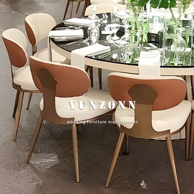 | Product Name: | Wedding Event Luxury New Modern Design Party Rental Brown Leather Cushion Stainless Steel Gold Chairs for Event |
