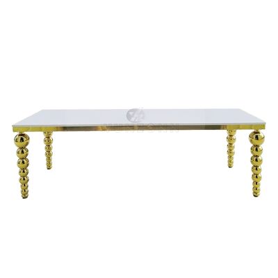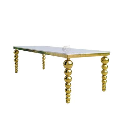 Product Name: Modern Heavy-Duty Metal Legs Banquet Table with Gold Stainless Steel & MDF Top for Hotel Wedding Dining Outdoor Living Room Use