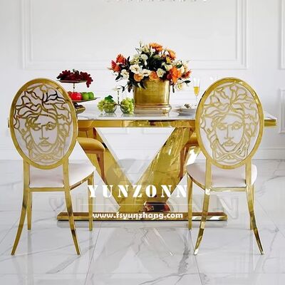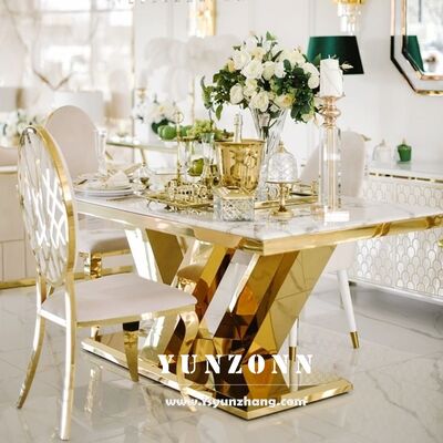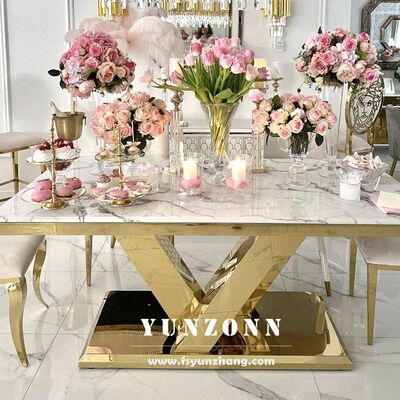 | Product Name: | Luxury Gold Dining Table with White Marble Top OEM Furniture for Hotel Restaurant for Banquets Living Room Use Metal Material |