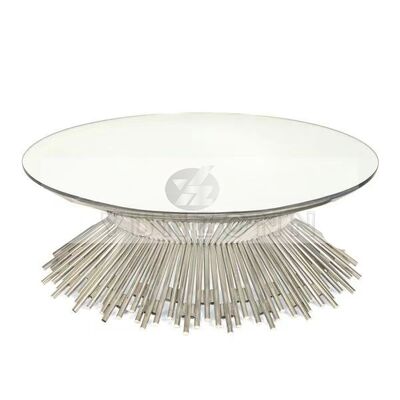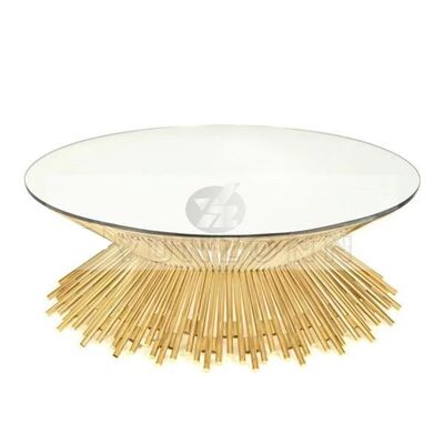 Divine Luxury Coffee Table with Wire Metal Base and Mirror Top Designer Living Room Furniture and Home Decor Centerpiece |